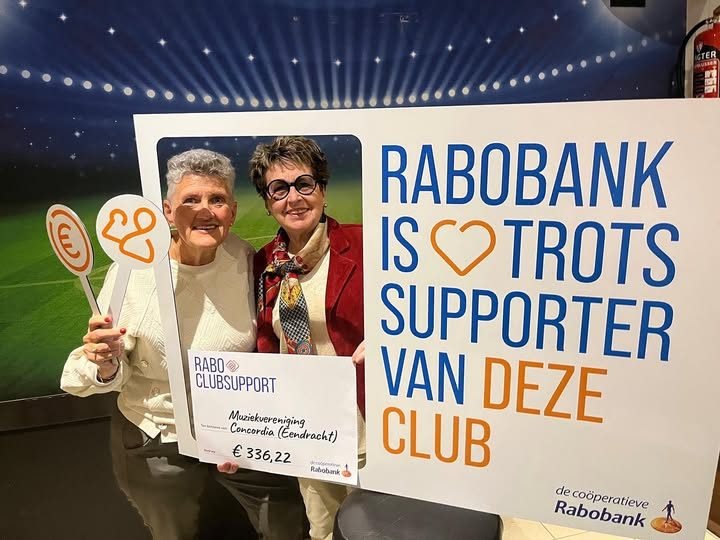 Concordia neemt een prachtig bedrag van Raboclubsupport in ontvangst.
